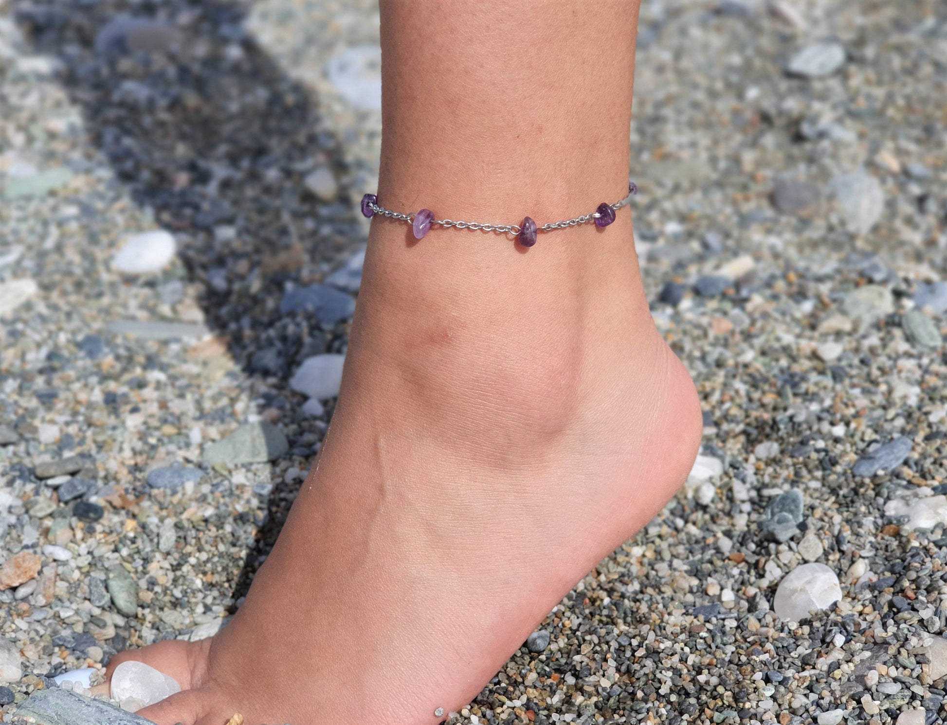 Amethyst Anklet, Gold Anklet, Silver Anklet, Crystal Anklet, Gemstone Anklet, Ankle Bracelet, Boho Anklet, Beach Anklet, Summer Anklet, Chip