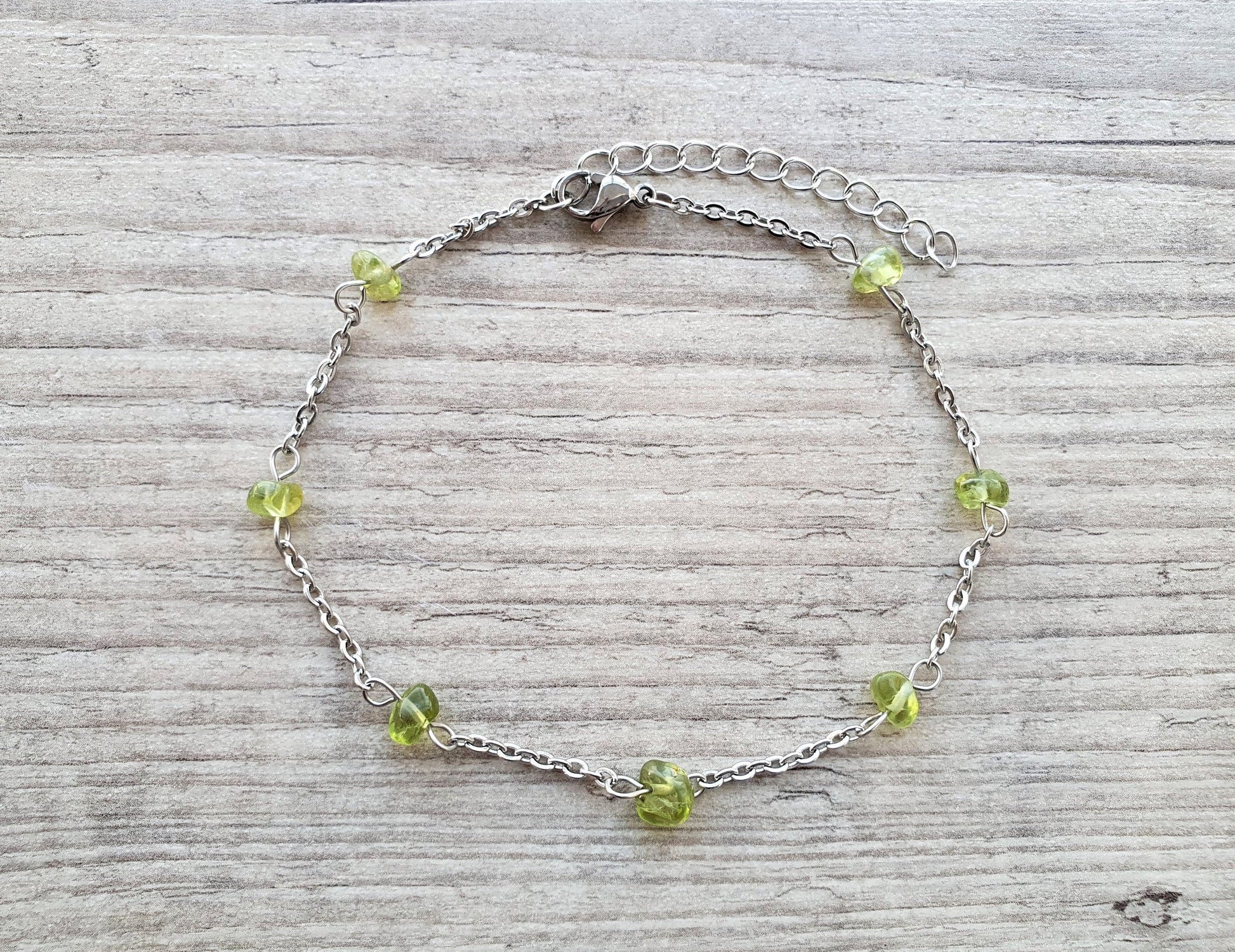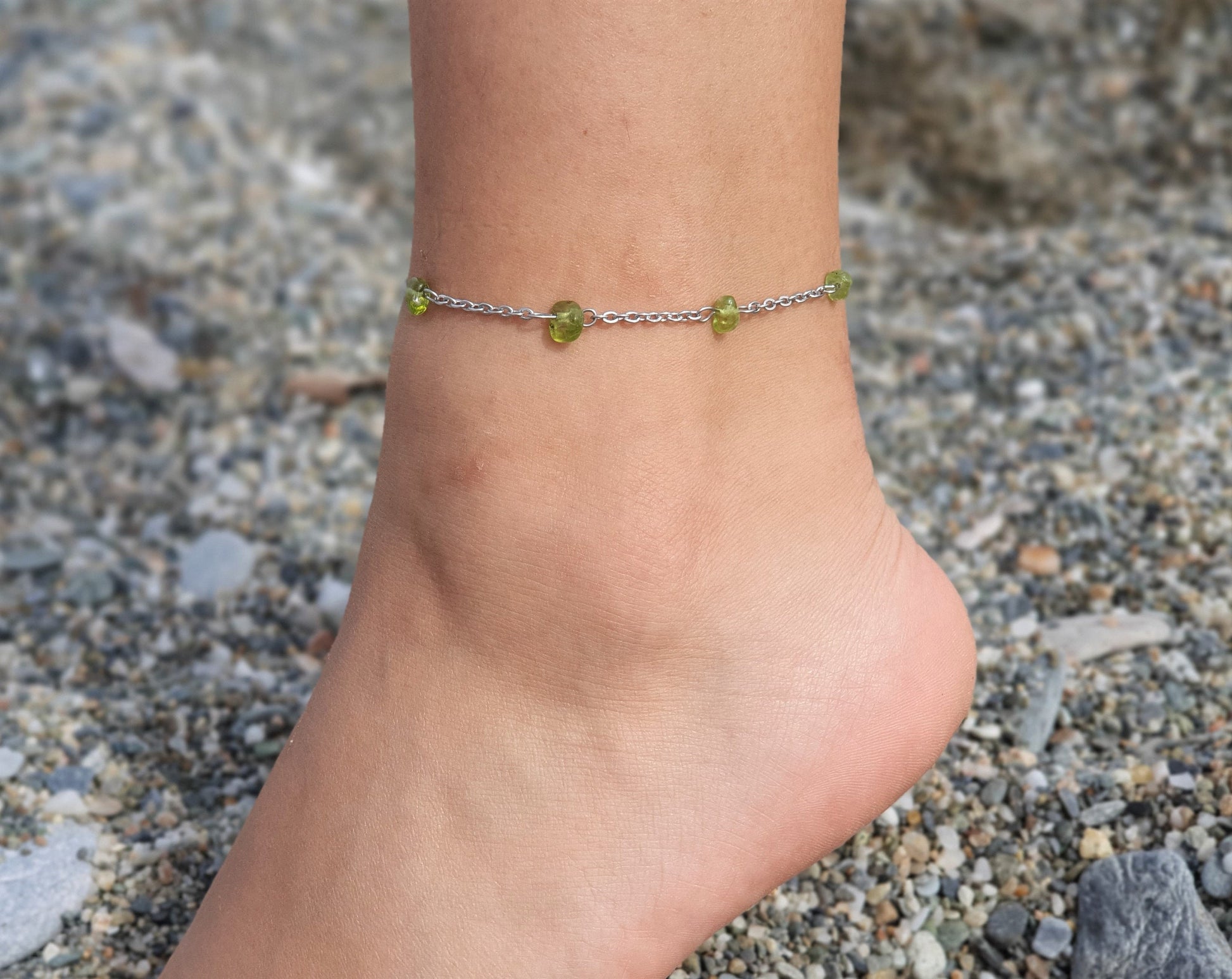 Peridot Anklet, Gold Anklet, Silver Anklet, Crystal Anklet, Gemstone Anklet, Ankle Bracelet, Boho Anklet, Beach Anklet, Summer Anklet, Chips