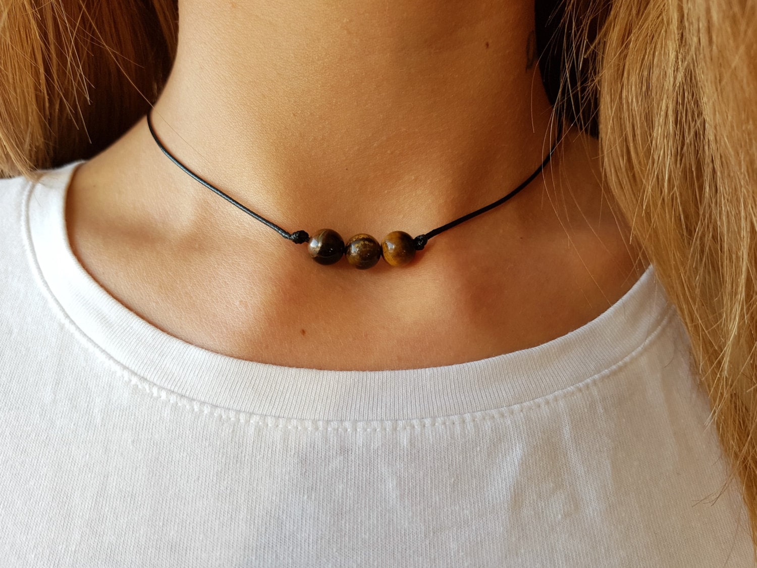 Tigers Eye Choker, Gemstone Choker, Boho Choker, Bohemian Choker, Thin Black Choker, Black Choker, Choker Necklace, Simple Black Choker
